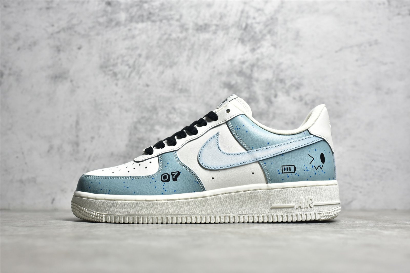 Nike AIR FORCE 1 LOW 07 LUBAN NO. 7 GRAFFITI MINT BLUE/WHITE/BLACK CW2568-033