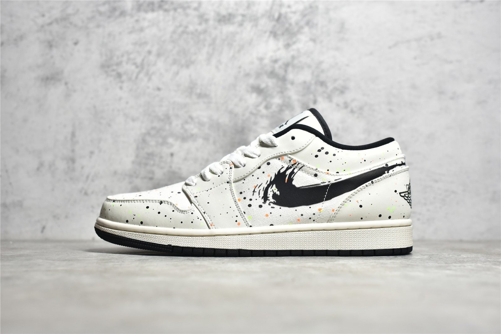 Nike AIR JORDAN 1 LOW BRUSHSTROKE SWOOSH PAINT SPLATTER NATURAL/BLACK/MULTI-COLOR DM3528-100