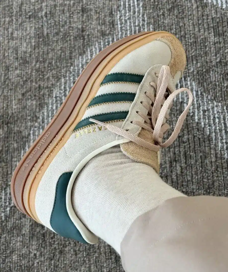 הפכו כל צעד שלכם לדבר על עוצמה וסגנון עם Adidas Gazelle Bold Magic Beige Collegiate Green. הסניקרס המוקדמות והנחשקות הללו פותחות לכם דלת לעולם האופנה והטרנדיות, עם עיצוב שמזכיר את עידן הרטרו באווירה חדשנית. לא משנה אם אתם בעבודות או יוצאים ליום שבת עם חברים, הסניקרס האלו יספקו לכם רמה חדשה של נוחות ובריאות לכף הרגל באכפתיות וברשמיות. הן מיועדות לשני המינים, ומיוצרות מחומרים איכותיים שמשלבים בין עור וזמש, כך שיתאימו לכל לוק שתרצו להציג. הוסיפו סטייל לכל הרכב קיץ שלכם עם התוספת המושלמת הזו! אל תפספסו את ההזדמנות לשדרג את האולסט שלכם! • שירות לקוחות זמין בטלפון 055-9661868 ומשלוח מהיר לכל הארץ • רכישה מאובטחת והחזרות קלות ב-ShoeSale