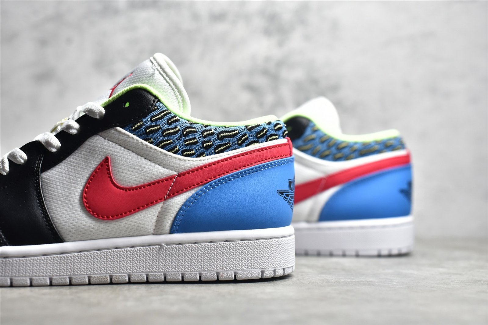 Nike AIR JORDAN 1 LOW GS FUNKY PATTERNS BLACK/LIGHT FUSION RED/WHITE/COAST DH5927-006